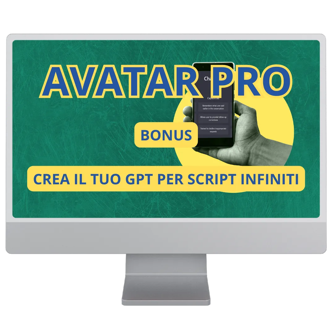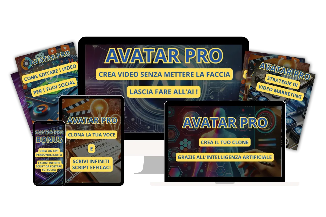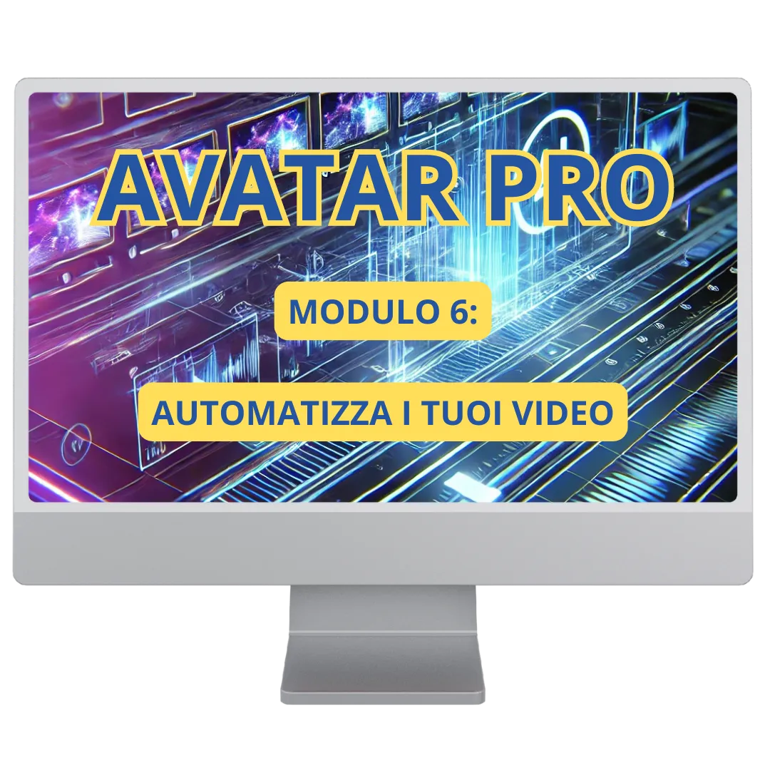 Avatar PRO è un video corso che ti insegna a creare video professionali utilizzando l'intelligenza artificiale, senza mai doverti mettere davanti alla telecamera. Il corso è pensato per imprenditori, freelance e marketer che vogliono creare contenuti video senza affrontare il disagio della telecamera e risparmiando tempo grazie all'automazione.